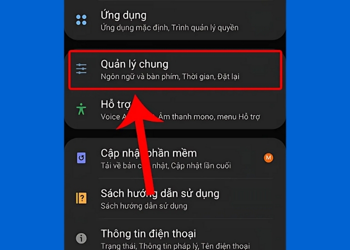 Bước 1: Vào mục “Cài đặt” rồi chọn tiếp mục “Quản lý chung”.