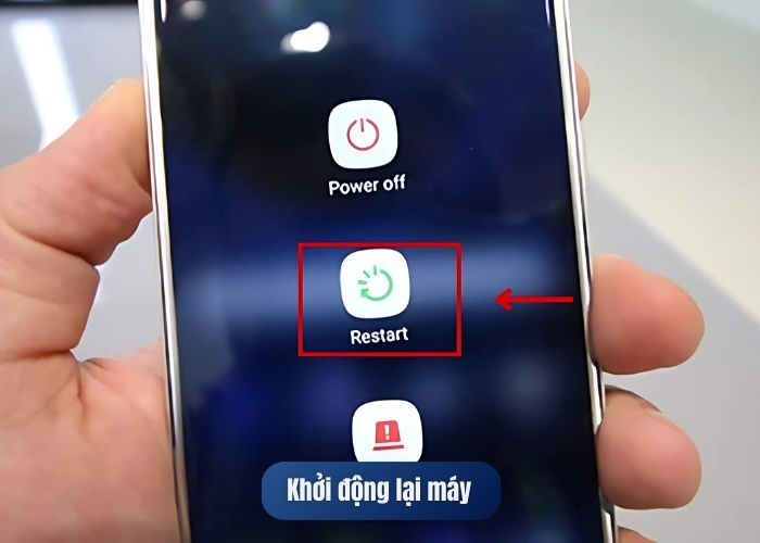 Tiến hành khởi động lại máy để khắc phục tình trạng điện thoại Samsung S8 bị sọc màn hình