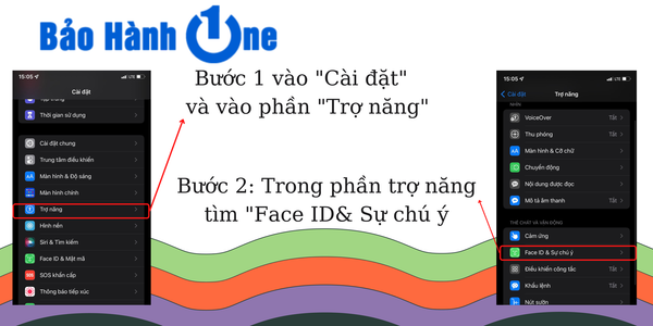 Bước 1: Vào cài đặt →Tìm mục "Trợ năng" → Chọn mục "Face ID & sự chú ý"