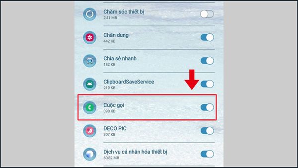 Bước 4: Kéo thanh Cuộc gọi sang phải để bật quyền hiển thị cho ứng dụng Điện thoại.