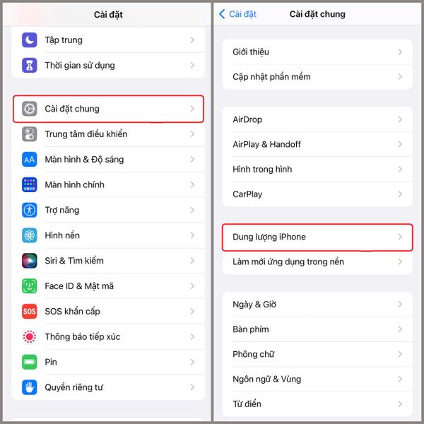 Chọn mục "Dung lượng" hoặc "Bộ nhớ"
