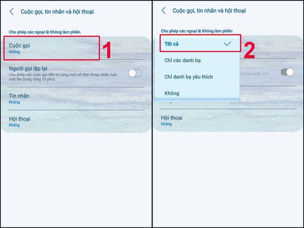 Bước 3. Tìm và chọn Cuộc gọi > Chọn Tất cả trong danh sách các tùy chọn. Để chắc chắn khi quên tắt chế độ không làm phiền, bạn vẫn sẽ nhận được cuộc gọi.