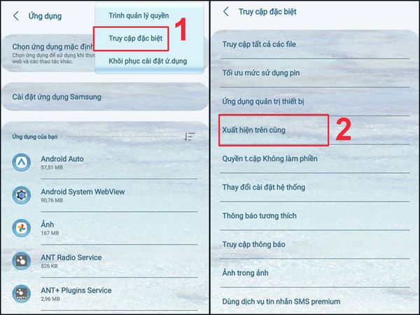 Chọn Truy cập đặc biệt > Chọn Hiển thị Xuất hiện trên cùng