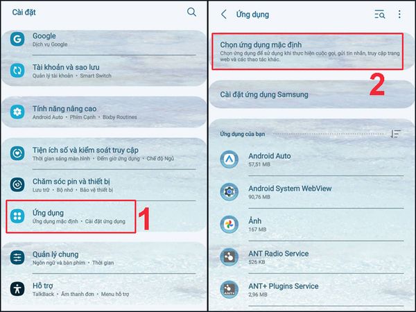 Chọn ứng dụng > Chọn ứng dụng mặc định
