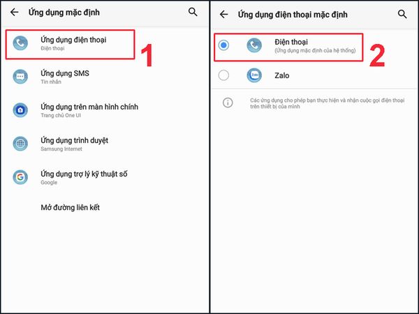 Mở mục quản lý Ứng dụng điện thoại > chọn điện thoại mặc định