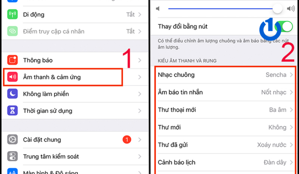 Với điện thoại iPhone: “Mở Cài đặt → Chọn Âm thanh & cảm ứng →Tại mục Kiểu âm thanh và rung bạn kiểm tra lại kiểu âm thanh thông báo và thay đổi lại.