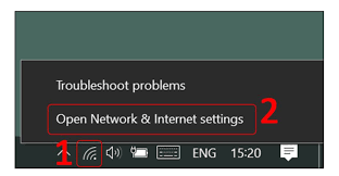 Bước 1: Trên máy tính Windows, nhấp chuột phải vào biểu tượng Wi-Fi ở góc dưới cùng bên phải màn hình và chọn "Open Network & Internet settings".