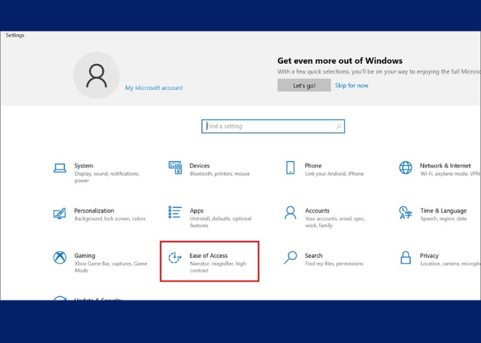 Bước 2: Tại cửa sổ “Settings” bạn nhấn vào "Ease of Access".