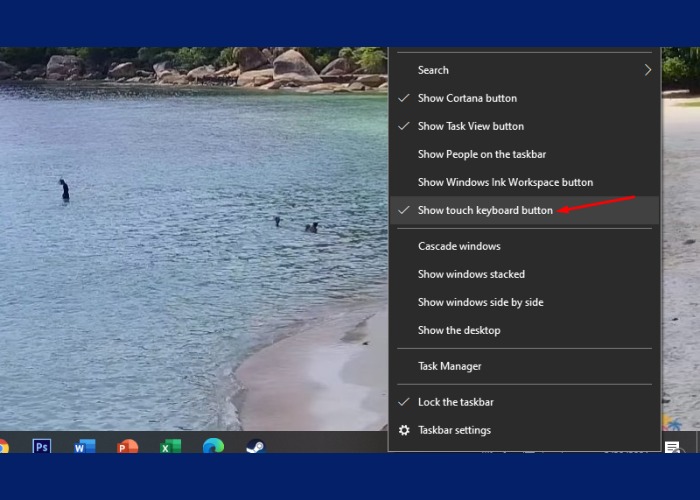 Vào thanh Taskbar chọn "Show touch keyboard button"