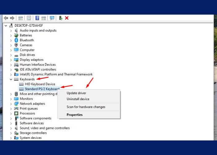 Vào Standard PS/2 Keyboard và chọn "Update driver"