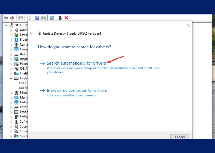 Bước 4: Chọn "Search automatically for drivers" để Windows tự động tìm kiếm cài đặt driver mới hoặc cập nhật lại driver hiện có cho bàn phím laptop của bạn.
