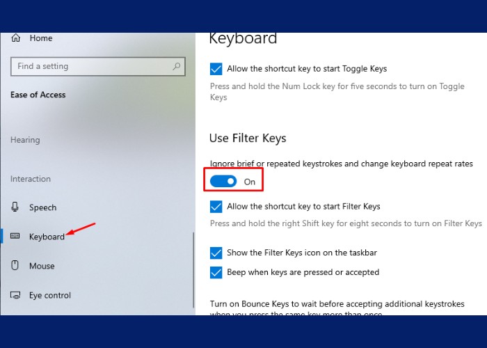 Một cách khắc phục bàn phím laptop không hoạt động tiếp theo cài đặt lại bàn phím. Filter Keys giúp bạn sửa hầu hết các lỗi của bàn phím: