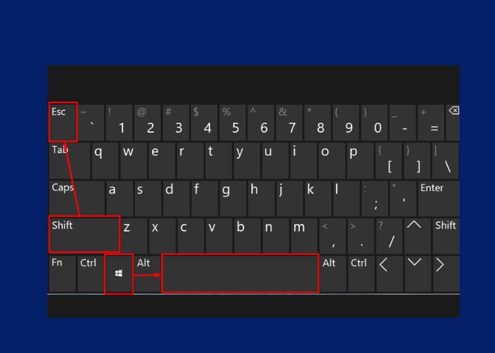 Tổ hợp phím Windows + Space hoặc Shift + Esc