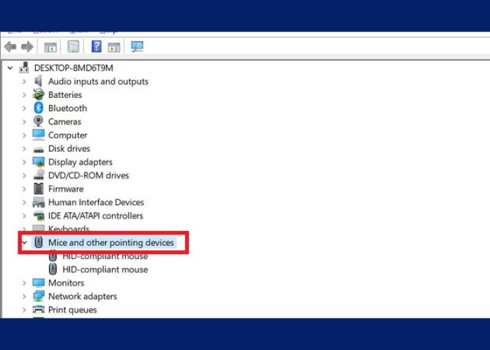 Bước 2: Trong cửa sổ Device Manager, tìm và chọn mục "Mice and other pointing devices".