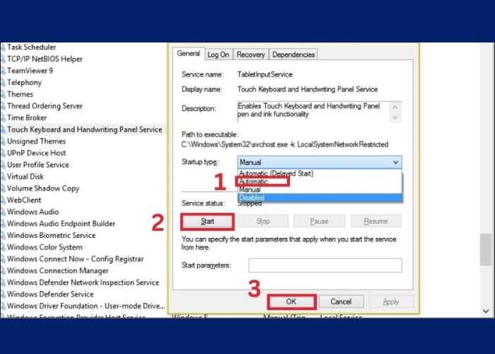 Lưu ý: Việc tắt dịch vụ Touch Keyboard and Handwriting Panel Service có thể ảnh hưởng đến các tính năng khác của hệ thống vì vậy bạn nên cân nhắc trước khi thực hiện.