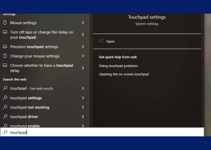 Gõ cụm từ “touchpad” sau đó nhấn Enter