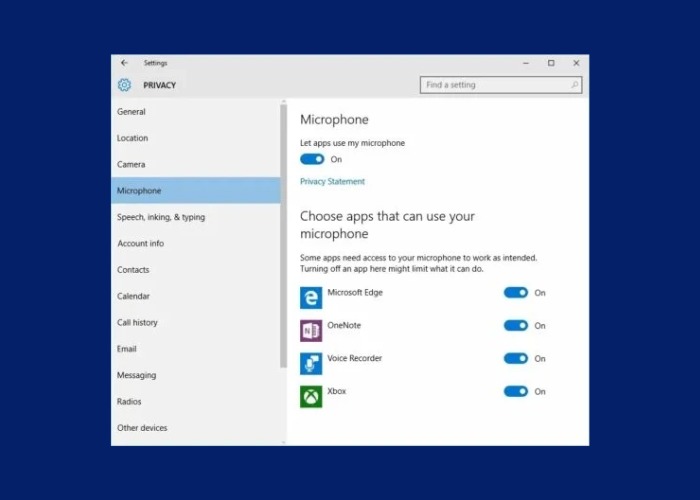 Việc kích hoạt micro là một bước quan trọng để bạn có thể thực hiện cuộc gọi video, ghi âm hoặc sử dụng các ứng dụng liên quan đến âm thanh. Dưới đây là hướng dẫn cách bật camera và micro trên laptop Win 10 thông qua cài đặt Privacy của hệ thống: