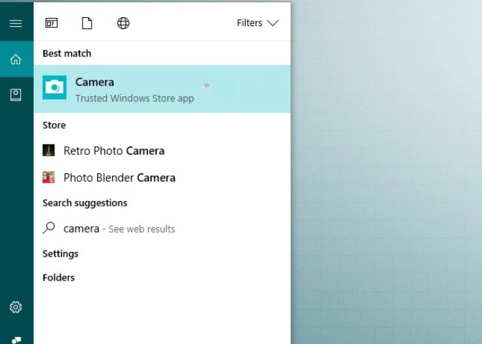 Vào biểu tượng “Start” sau đó nhập từ khóa “Camera”