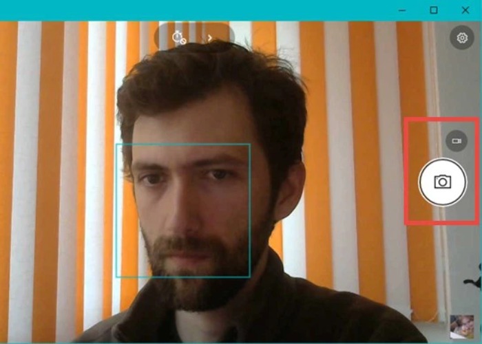 Bước 2: Để chụp ảnh bằng camera trên laptop Windows 10 bạn chỉ cần nhấp vào biểu tượng hình máy ảnh trên khung hình hiển thị trên màn hình.