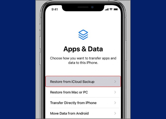 Trên iPhone mới chọn mục “Restore from iCloud Backup”