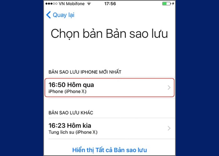 Chọn bản sao lưu từ iCloud muốn khôi phục