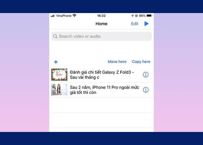 Kiểm tra video đã tải trong tab "Home"