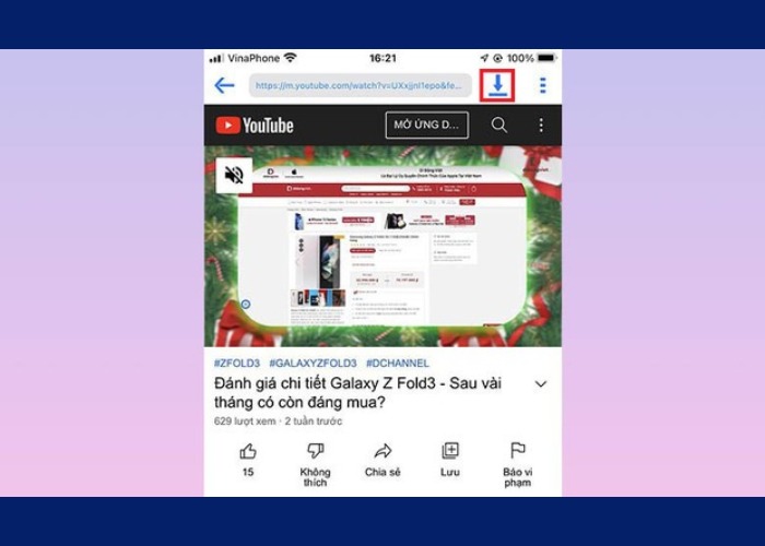 Bước 4: Nhấn vào biểu tượng tải về xuất hiện ở dưới video.