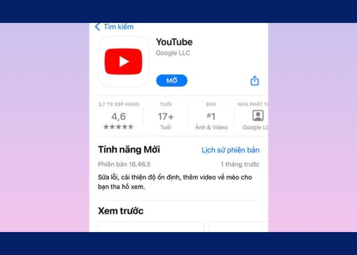 Bước 1: Tải ứng dụng YouTube từ App Store (nếu ứng dụng chưa có trên điện thoại của bạn).