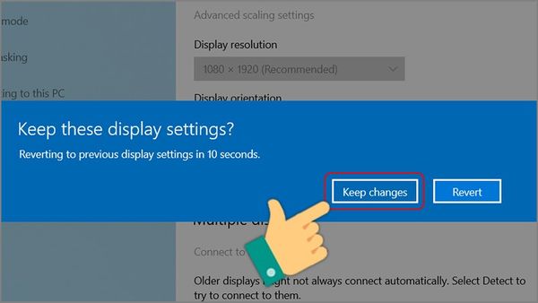 Bước 3: Sau khi thực hiện xoay màn hình theo hướng mong muốn, bạn có thể lưu thay đổi bằng cách chọn "Keep Changes" hoặc hủy thao tác bằng cách chọn "Revert".