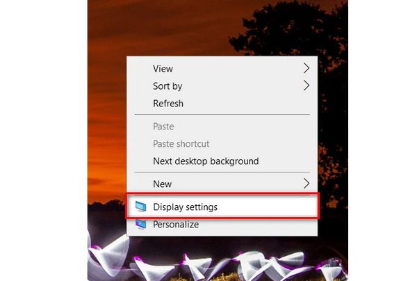 Bước 1: Trên màn hình chính của laptop, nhấn chuột phải -> "Display Settings".