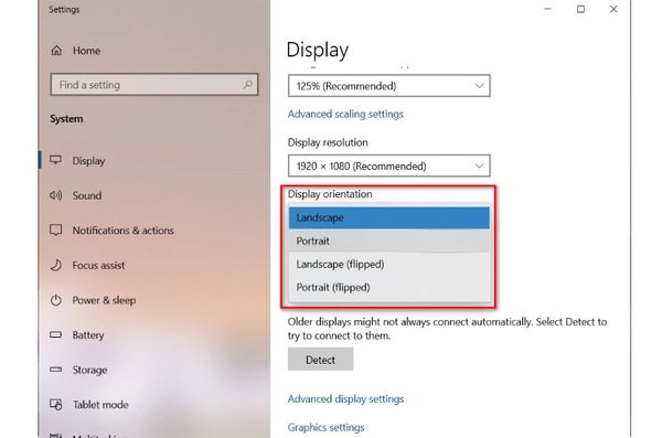 Bạn có thể xoay màn hình lại như cũ, hay xoay ngược lại màn hình bằng cách sử dụng Display Settings trong phần cài đặt. Bạn có thể thao tác như sau: