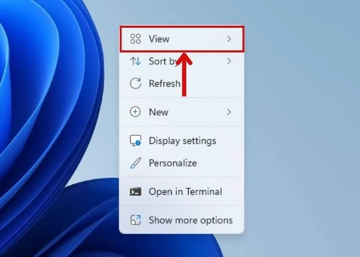 Bước 1: Tại màn hình Desktop Win 10, nhấp chuột phải vào bất kỳ vị trí trống nào để hiện danh mục tùy chọn và chọn View.