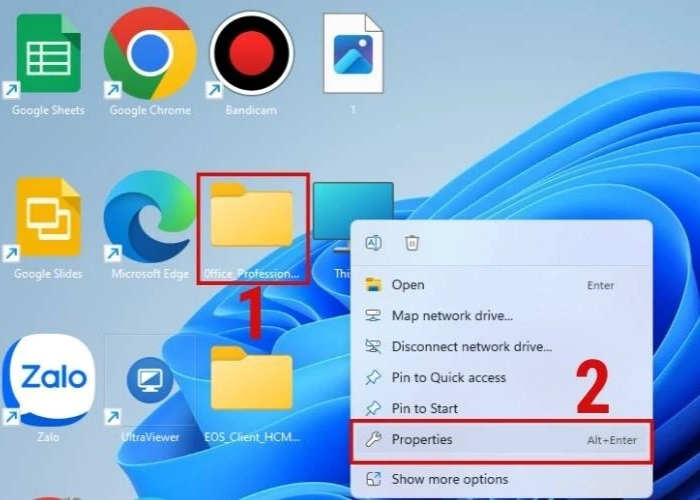 Bước 1: Nhấp chuột phải vào icon muốn ẩn và chọn Properties.