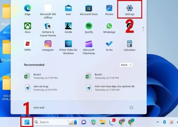 Bước 1: Vào Start và chọn Cài đặt (Settings).