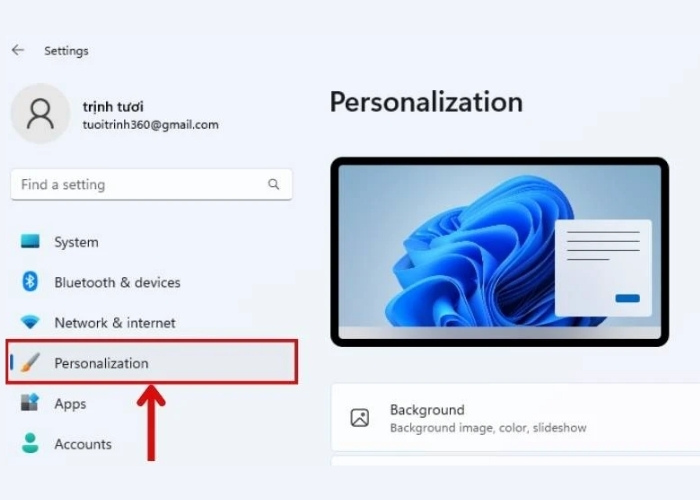 Bước 2: Trong mục Settings, nhấn chọn Personalization. Hoặc nhấp chuột phải vào Settings và chọn Personalization đều được.