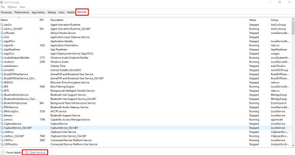 Bước 3: Chuyển sang tab "Services" -> Mở "Services".