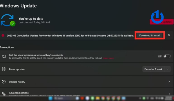 Bước 2: Chọn vào mục Check for updates để máy tính kiểm tra bản cập nhật Windows mới nhất.