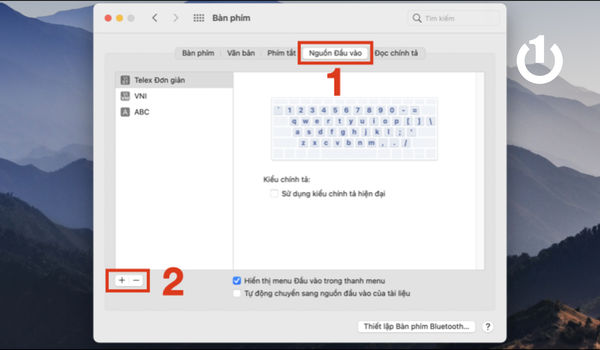 - Bước 2: Chọn “Nguồn Đầu vào” → Nhấn dấu “+” để thêm các kiểu nhập liệu phù hợp, dấu “-” là để xóa các kiểu nhập văn bản không phù hợp.