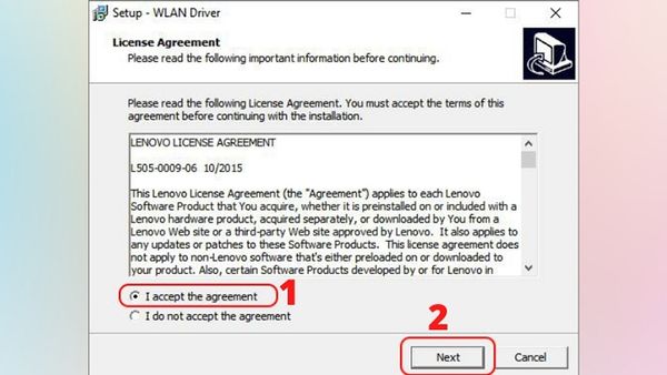 Bước 3: Tiếp theo bạn đánh dấu vào mục “I accept the agreement" → Sau đó nhấn “Next”