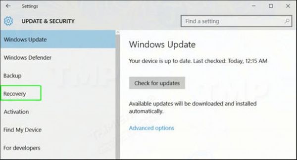 - Sau khi mở ứng dụng Settings, bạn sẽ thấy một số tùy chọn khác nhau. Hãy click vào Update & security và sau đó click chuột vào Recovery từ khung bên trái cửa sổ. Tiếp theo, ở khung bên phải của cửa sổ, bạn sẽ thấy mục Advanced startup. Hãy click vào nút Restart now và máy tính của bạn sẽ khởi động lại.