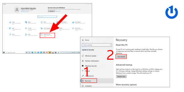 Bước 2: Click chọn “Recovery” → Chọn tiếp “Get started”