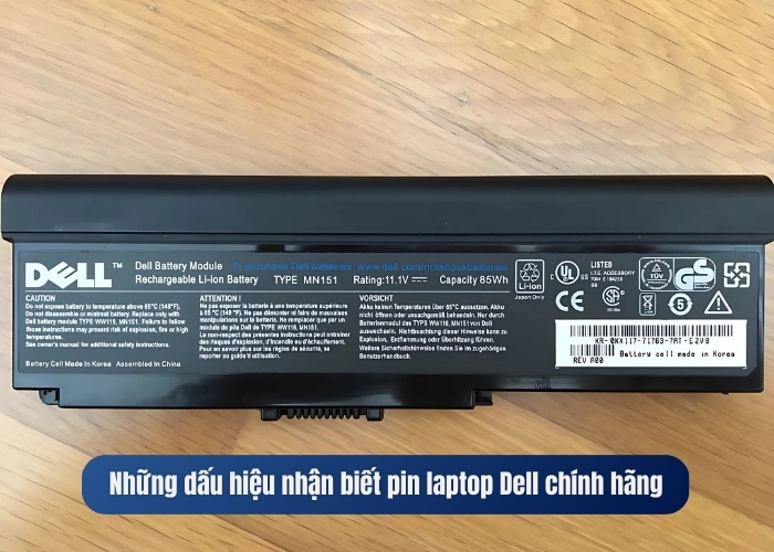 Trước khi tìm hiểu cách kiểm tra pin laptop chính hãng, bạn cần nhận biết pin laptop Dell chính hãng bởi những yếu tố như sau: