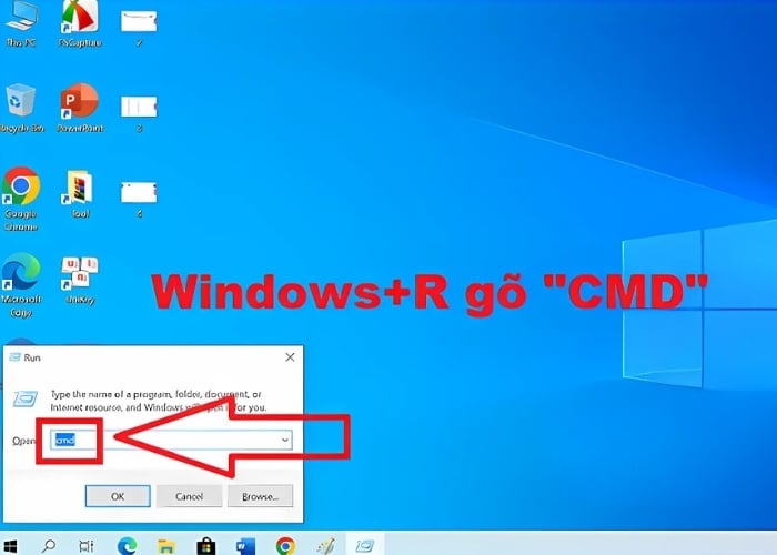 Bước 1: Bấm tổ hợp phím “Windows + R” rồi gõ “cmd” và nhấn “Enter”