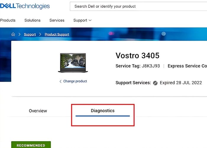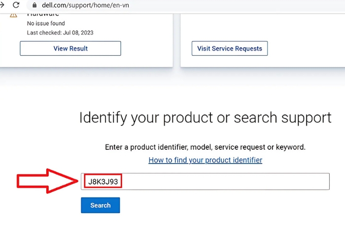 Bước 3: Nhập “Service Tag” được thấy vào website chính hãng của Dell.