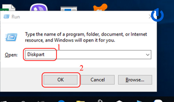 Bước 1: Ấn tổ hợp phím “Windows + R” → Gõ “Diskpart” và ấn “Enter”