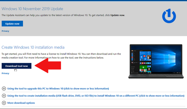 Bước 1: Truy cập trang web Windows → Chọn “Download tool now”.