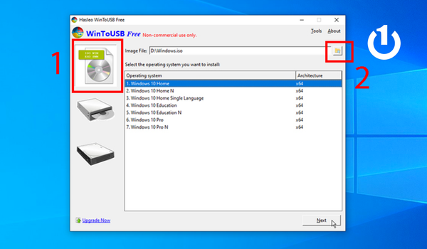 Bước 2: Tìm địa chỉ chứa file .ISO cài Win đã tải về ở bước trên → Bấm chọn bản Windows (có thể chọn Home hoặc Pro) → Sau đó bấm “Next”.