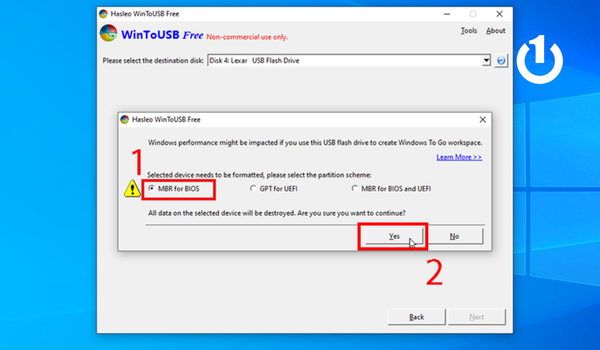Bước 3: Click vào “MBR for BIOS” →Tiếp tục chọn “Yes”.