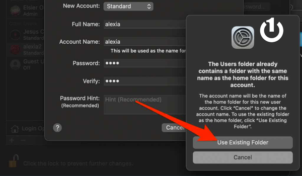Nếu bạn đã chọn mục “Không thay đổi thư mục nhà” (Don’t changes home folder) trước khi xóa người dùng, thì khôi phục lại bằng cách sau đây: