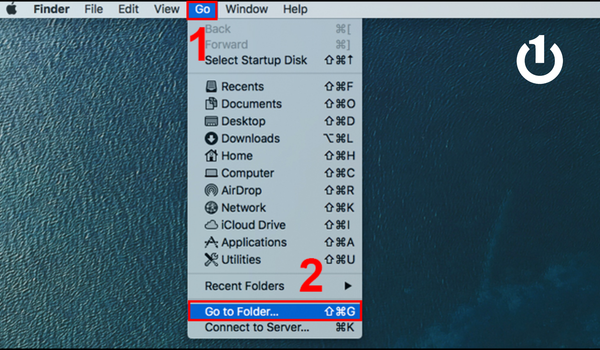 Bước 1: Tại màn hình chính, chọn “Go” ở trên thanh công cụ → Chọn tiếp “Go to folder”.